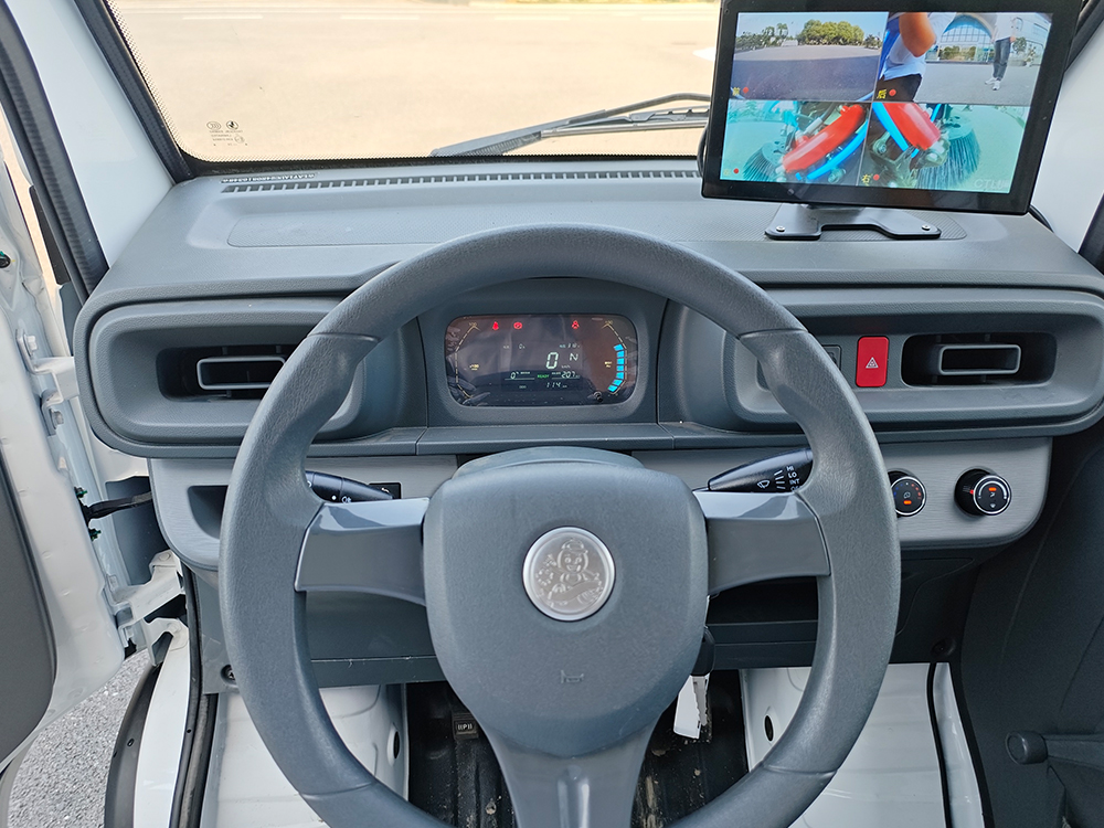 ★操控臺:駕駛室配備智能屏控,支持一鍵作業,操作簡單;車輛右側方設有硅膠按鈕開關,雙重操作系統,使用更便捷。