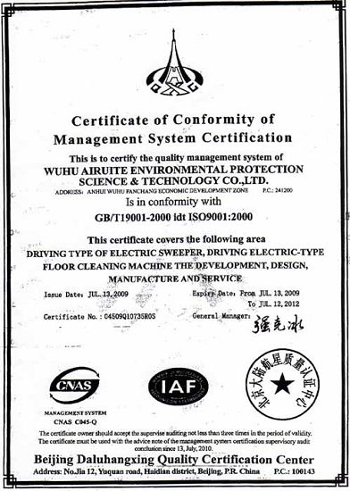 順利通過(guò)ISO9001:2000質(zhì)量管理體系認(rèn)證必將是愛(ài)瑞特公司前進(jìn)道路上跨越的又一臺(tái)階。相信在全體員工的努力下,愛(ài)瑞特公司不斷學(xué)習(xí)、吸收國(guó)內(nèi)外先進(jìn)的管理經(jīng)驗(yàn),一定能為廣大客戶提供更多更高質(zhì)量的產(chǎn)品與服務(wù)。