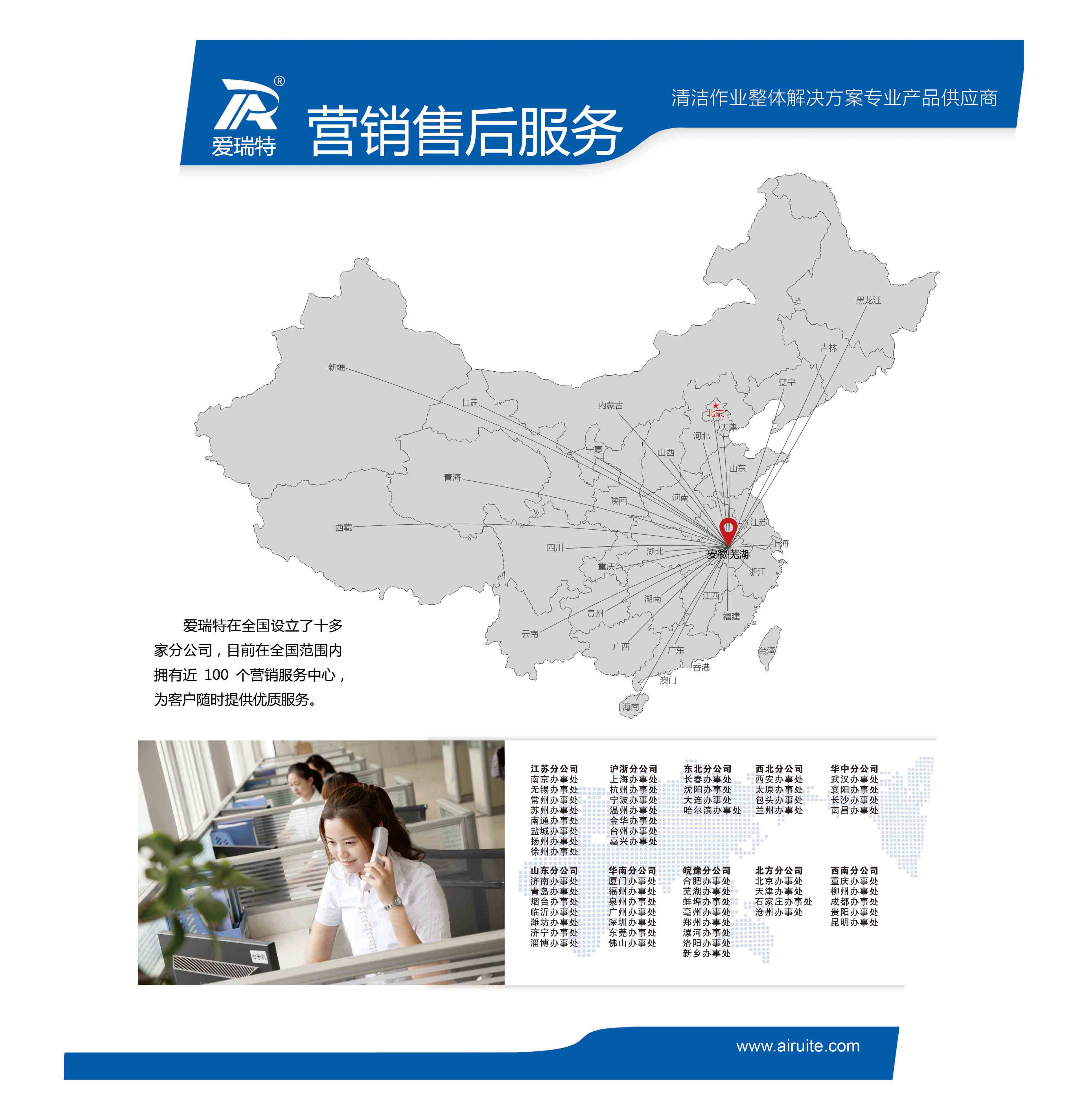 愛瑞特營銷服務網絡遍布全國,擁有近100多個營銷服務中心。期待與您攜手共創美好未來!