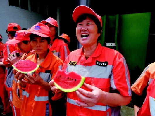 關愛環衛工人,全社會在行動。在此,愛瑞特向全社會發出倡議:為了城市的清潔,為了“城市美容師”的健康,我們只需舉手之勞,少制造垃圾,不亂扔垃圾,在這個火熱的夏天為“城市美容師”帶來絲絲清涼。
