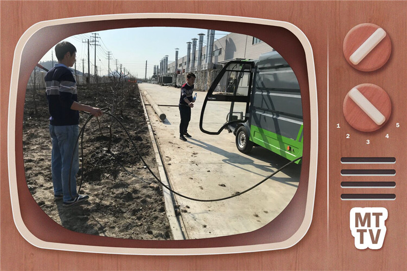 植樹活動現場一派熱火朝天的景象,有的揮鍬、有的扶樹、有的培土、有的澆水,個個干勁十足。連公司的高壓沖洗車Q8也不甘示弱,沖到一線來澆水。